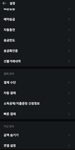 - '카카오페이' 섹션을 찾아 탭합니다.